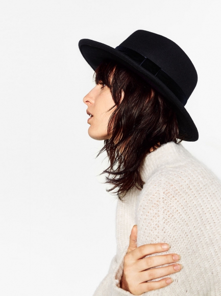 11-26 2016 人造皮双层 T 恤黑色宽檐帽是一直未曾改变的经典,面料采用100%的羊毛,宽度适中的绸缎作为小的修饰,经典中增添了时尚感。